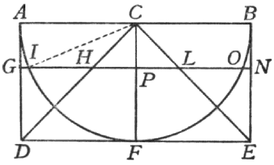 Salv. La dimostrazione è anco breve e facile. Ripigliamo la segnata figura, nella quale, per esser l'angolo IPC retto, il quadrato del semidiametro IC è eguale alli due quadrati de i lati IP, PC: ma il semidiametro IC è eguale alla AC, e questa alla GP, e la CP è eguale alla PH; adunque il quadrato della linea GP è eguale alli due quadrati delle IP, PH e 'l quadruplo e i quadrupli, cioè il quadrato del diametro GN è eguale alli due quadrati IO, HL: e perché i cerchi son tra loro come i quadrati de' lor diametri, il cerchio il cui diametro GN sarà eguale alli due cerchi i cui diametri IO, HL, e tolto via il comune cerchio il cui diametro IO, il residuo del cerchio GN sarà eguale al cerchio il cui diametro è HL. E questo è quanto alla prima parte: quanto poi all'altra parte, lasceremo per ora la dimostrazione, sì perché, volendola noi vedere, la troveremo nella duodecima proposizione del libro secondo De centro gravitatis solidorum posta dal Sig. Luca Valerio, nuovo Archimede dell'età nostra, il quale per un altro suo proposito se ne servì, sì perché nel caso nostro basta l'aver veduto come le superficie già dichiarate siano sempre eguali, e che, diminuendosi sempre egualmente, vadano a terminare l'una in un sol punto e l'altra nella circonferenza d'un cerchio, maggiore anco di qualsivoglia grandissimo, perché in questa consequenza sola versa la nostra maraviglia.