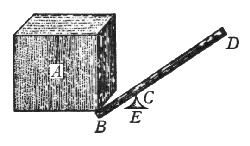 Né questo instrumento è differente da quell'altro, che vette e, volgarmente, lieva si adimanda; col quale si muovono grandissime pietre ed altri pesi con poca forza. L'applicazione del quale è secondo la figura posta qui appresso: dove la lieva sarà notata per la stanga, di legno o altra salda materia, BCD; il grave peso da alzarsi sia A; ed un fermo appoggio o sostegno, sopra il quale calchi e si muova la lieva, sia notato E. E sottoponendo al peso A una estremità della lieva, come si vede nel punto B, gravando la forza nell'altra estremità D, potrà, ancorché poca, sollevare il peso A, tutta volta che qual proporzione ha la distanza BC alla distanza CD, tale abbia la forza posta in D, alla resistenza che fa il grave A sopra il punto B. Per lo che si fa chiaro, che quanto più il sostegno E si avvicinerà all'estremità B, crescendo la proporzione della distanza DC alla distanza CB, tanto si potrà diminuire la forza in D per levare il peso A.