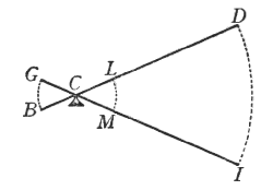 E qui si deve notare (il che anco a suo luogo si anderà avvertendo intorno a tutti gli altri strumenti mecanici), che la utilità, che si trae da tale strumento, non è quella che i volgari mecanici si persuadono, ciò è che si venga a superare, ed in un certo modo ingannare, la natura, vincendo con piccola forza una resistenza grandissima con l'intervento del vette; perché dimostreremo, che senza l'aiuto della lunghezza della lieva si saria, con la medesima forza, dentro al medesimo tempo, fatto il medesimo effetto. Imperò che, ripigliando la medesima lieva BCD, della quale sia C il sostegno, e la distanza CD pongasi, per essempio, quintupla alla distanza CB, e mossa la lieva sin che pervenga al sito ICG, quando la forza avrà passato lo spazio DI, il peso sarà stato mosso dal B in G; e perché la distanza DC, si è posta esser quintupla dell'altra CB, è manifesto, dalle cose dimostrate, potere essere il peso, posto in B, cinque volte maggiore della forza movente, posta in D. Ma se, all'incontro, porremo mente al camino che fa la forza da D in I, mentre che il peso vien mosso da B in G, cognosceremo parimente il viaggio DI esser quintuplo allo spazio BG: in oltre, se piglieremo la distanza CL eguale alla distanza CB, posta la medesima forza, che fu in D, nel punto L, e nel punto B la quinta parte solamente del peso che prima vi fu messo, non è alcun dubbio, che, divenuta la forza in L eguale a questo peso in B, ed essendo eguali le distanze LC, CB, potrà la detta forza, mossa per lo spazio LM, trasferire il peso a sé eguale per l'altro eguale intervallo BG; e che reiterando cinque volte questa medesima azione, trasferirà tutte le parti del detto peso al medesimo termine G. Ma il replicare lo spazio ML niente per certo è di più o di meno che il misurare una sol volta l'intervallo DI, quintuplo di esso LM: adunque il trasferire il peso da B in G non ricerca forza minore, o minor tempo, o più breve viaggio, se quella si ponga in D, di quello che faccia di bisogno quando la medesima fosse applicata in L. Ed insomma il commodo, che si acquista dal benefizio della lunghezza della lieva CD non è altro che il potere muovere tutto insieme quel corpo grave, il quale dalla medesima forza, dentro al medesimo tempo, con moto eguale, non saria, se non in pezzi, senza il benefizio del vette, potuto condursi.