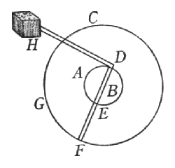 essere posto un asse di figura colonnare, volubile intorno al centro B, e circa ad esso avvolta la corda DH, legata al peso da trainarsi, se in detto asse si inserirà la stanga FEBD, e che nella sua estremità F venga applicata la forza di un uomo, o vero di un cavallo, o di altro animale atto nato a tirare, il quale, movendosi in giro, camini sopra la circonferenza del cerchio FGC, si viene ad aver formato e fabricato l'argano: sì che nel condurre intorno la stanga FBD girerà ancora l'asse o ceppo dell'argano EAD, e dalla corda, che intorno ad esso si avvolgerà, sarà costretto a venire avanti il grave H. E perché il punto del sostegno, intorno al quale si fa il moto, è il centro B, e da esso si allontana il movente secondo la linea BF, ed il resistente per l'intervallo BD, si viene a formare la lieva FBD, in virtù della quale la forza acquista momento eguale alla resistenza, tuttavolta che ad essa abbia la proporzione che si trova avere la linea DB alla BF, ciò è il semidiametro dell'asse al semidiametro del cerchio, nella cui circonferenza si muove la forza. Ed in questo e nell'altro stromento si noti quello che più volte si è detto: ciò è, l'utilità che da queste machine si trae non esser quella che comunemente, ingannandosi, crede il volgo dei mecanici, ciò è che, defraudando la natura, si possa con machine superare la sua resistenza, ancorché grande, con piccola forza; essendo che noi faremo manifesto come la medesima forza posta in F, nel medesimo tempo, facendo il medesimo moto, condurrà il medesimo peso nella medesima distanza senza machina alcuna. Essendo che, posto, per essempio, che la resistenza del grave H, sia dieci volte maggiore della forza posta in F, farà di bisogno, per muovere detta resistenza, che la linea FB sia decupla della BD, e, per consequenza, che la circonferenza del cerchio FGC sia altresì decupla alla circonferenza EAD. E perché, quando la forza si sarà mossa una volta per tutta la circonferenza del cerchio FGC, l'asse EAD intorno al quale si avvolge la corda attraente il peso, averà parimente data una sol volta, è manifesto che il peso H non si sarà mosso più che la decima parte di quello che averà caminato il movente. Se dunque la forza per far muovere una resistenza maggiore di sé per un dato spazio, col mezzo di questa machina, ha bisogno di muoversi dieci volte tanto, non è dubbio alcuno che, dividendo quel peso in dieci parti, ciascuna di esse saria stata eguale alla forza, e, per consequenza, ne averia possuto trasportare una volta per tanto intervallo, per quanto lei stessa si moverà; sì che facendo dieci viaggi, ciascheduno eguale alla circonferenza AED, non averia caminato più che movendosi una volta sola per la circonferenza FGC, ed averia condotto il medesimo peso H nella medesima distanza. Il commodo, dunque, che si trae da queste machine, è di condurre tutto il peso unito, ma non con manco fatica, o con maggior prestezza, o per maggior intervallo, di quello che la medesima forza potesse fare conducendolo a parte a parte.